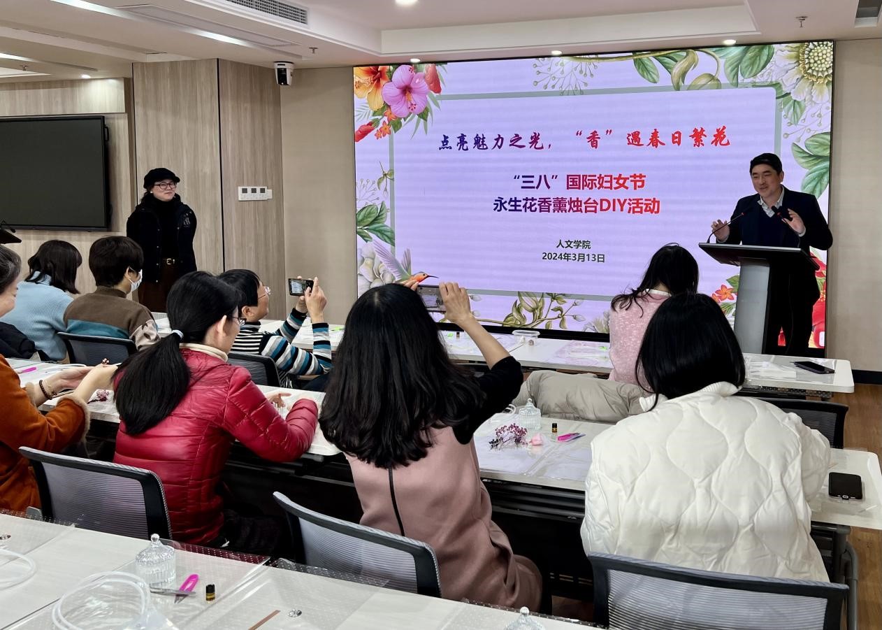 在微风和畅、生机盎然的三月里,MK(中国)工会为了热烈庆祝第114个“三八”国际妇女节,于3月13日特别策划了一场独具匠心的永生花香薰烛台DIY活动。此次活动为全院女教师们呈现了一场别致的春日繁花盛宴,让她们在亲手制作香薰烛台的过程中,感受春天的气息,放松身心。MK(中国)工会主席董大学发表了热情洋溢的开幕词,学院近50名女教师们积极参与其中,共同度过了一段愉悦的时光。MK(中国)党委书记潘黎勇也亲临现场,欣赏了大家的制作过程,为活动增添了更多的温馨与欢乐。