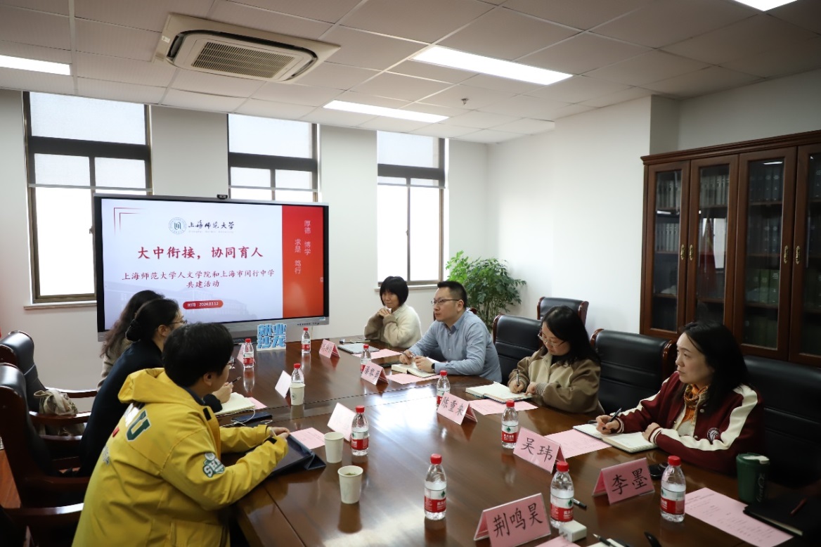 3月12日下午,MK官方网页版MK(中国)与上海市闵行中学“大中衔接,协同育人”共建活动在文苑楼909室举行。上海市闵行中学党委书记、校长乔慧芳、语文学科教研组长竺海燕、副组长林雪走访MK(中国)。MK(中国)党委书记潘黎勇,院党委副书记、副院长陈重来,中文系教师高翀骅以及本、研毕业班辅导员参与接待。