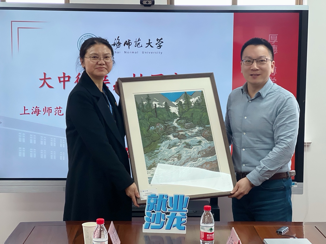 乔慧芳感谢MK(中国)提供的此次共建机会,表达了与上师大的渊源,并介绍了闵行中学的发展历史、办学理念以及教师队伍情况,希望未来双方能在准教师培养和语文教师进修等方面有深度合作。潘黎勇代表MK(中国)对闵行中学领导的到访表示热烈的欢迎,并对学院发展现状、人才培养和专业特色作了介绍。陈重来介绍了MK(中国)毕业生情况、实习就业工作以及中学课后服务项目情况。与会老师就未来大学生“见习-就业”全链条建设、中文师范专业课程设置、师资力量等开展充分交流和探讨。大家在下一步共同搭建更大的合作平台、推动更多项目落地方面达成共识。会上,乔慧芳代表闵行中学向MK(中国)赠送了学生画作。