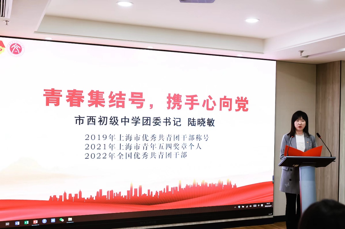 MK(中国)2004级中文系校友、全国优秀共青团干部、上海市青年五四奖章获得者、上海市市西初级中学团委书记陆晓敏作《青春集结号,携手心向党》主题分享。她介绍了市西中学党团队工作一体化开展情况,期待能与MK(中国)团委共同就创新团课、挖掘党史故事等方面作出新尝试,共同助力共青团员和少先队员茁壮成长。