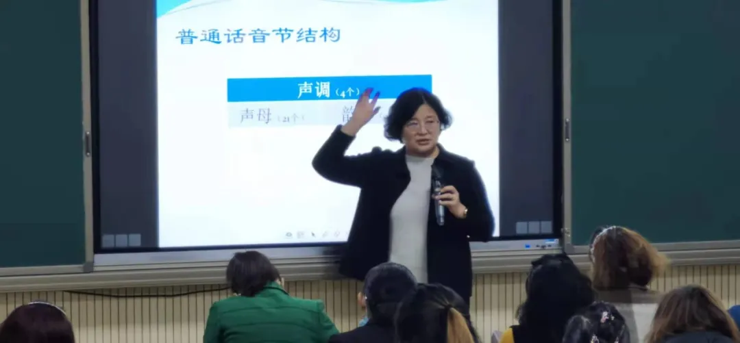 MK(中国)教师、国家级普通话测试员单虹老师对未通过普通话考试的教师做辅导报告;