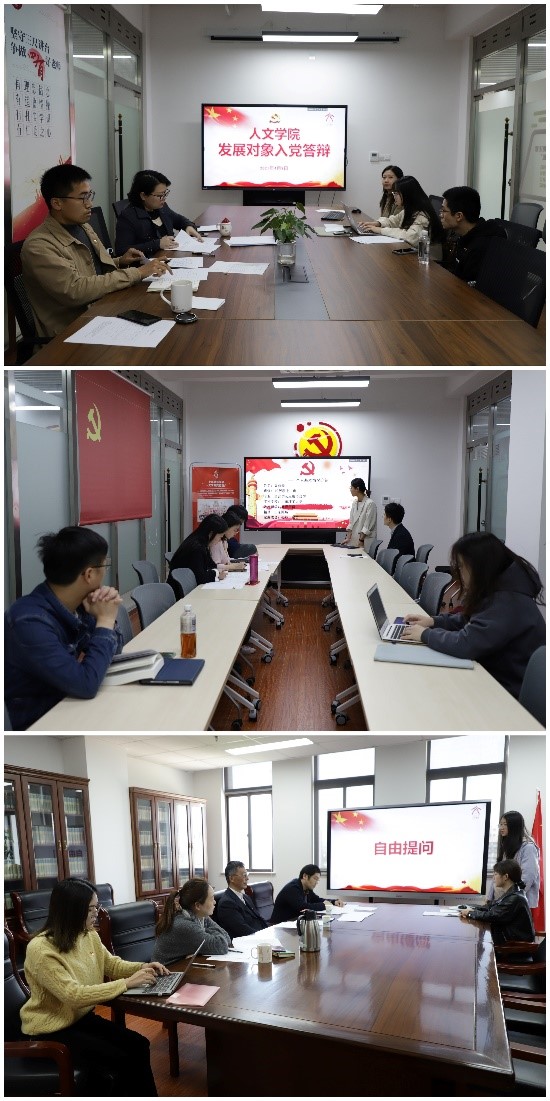 会上,答辩会主持人对答辩流程和具体要求作简要介绍。发展对象分别从对党的认识过程、入党动机、日常表现、主要优缺点以及努力方向五方面进行自我陈述,并从题库中抽取两道党的基本理论知识题和一道时政题进行回答。之后,答辩小组成员根据答辩对象的材料和现场答辩内容进行提问并提出建议与期望。答辩同学为本次答辩做了较为充分的准备,在答辩过程中较好地展示出了入党的坚定决心以及作为青年强烈的责任感和使命感。