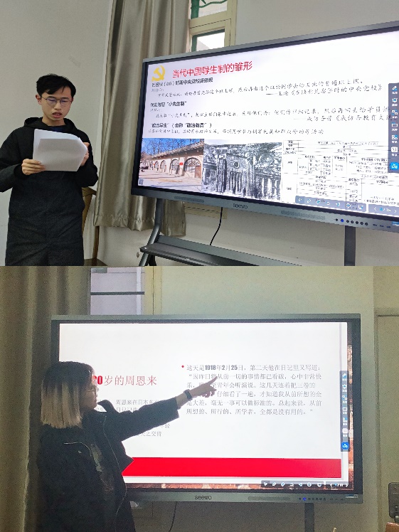 活动下半场由MK(中国)领航宣讲团成员顾朱杰和张煦欣同学带来微党课展示。顾朱杰同学作《学习党史强信念,朋辈引领献青春》为题的党课分享,他结合导生研究项目,介绍了“导生制度”在我国的发展历史,剖析了“导生”在我党建立初期发挥的重要作用,提出党史学习与导生工作密不可分,党史学习是导生做好思想引领的重要保障。张煦欣同学作《忆党史风华 赴青年使命》为主题的党课展示,她由“青年人可以做什么?”这样的思考引入,将我党历史上伟大领袖们在青年时期的成就作生动讲解,以此勉励与会导生们不忘初心,勇担使命。在场师生认真聆听学习,互动气氛良好。