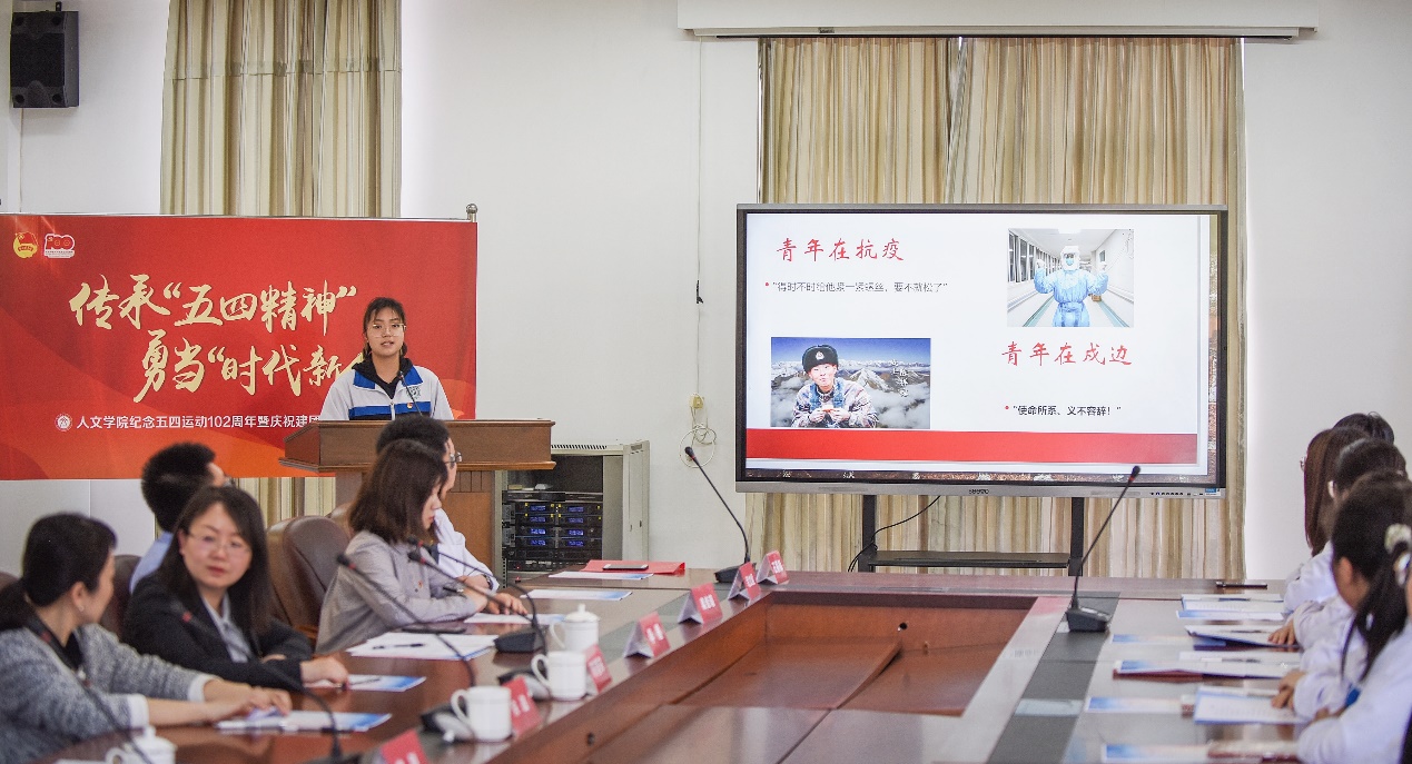学院领航理论宣讲团成员张煦欣带来了《忆党史风华,赴青年使命》的分享。她通过分享抗疫青年梁顺、戍边烈士陈祥榕的事迹,号召同学们要坚定理想信念,提升能力素养,并以周恩来同志提到的“思想要自由,做事要实在,学问要真切”与同学们共勉。一代人有一代人的风华,一代人有一代人的担当。今日之责任,不在他人,而全在我青年。102年后,五四的精神依旧激励着新一代的青年人成为民族的希望和脊梁,以只争朝夕的精神为理想而奋斗。青春,应有英姿勃发的风貌和博大宽广的胸怀,任凭岁月流转,五四精神永存。