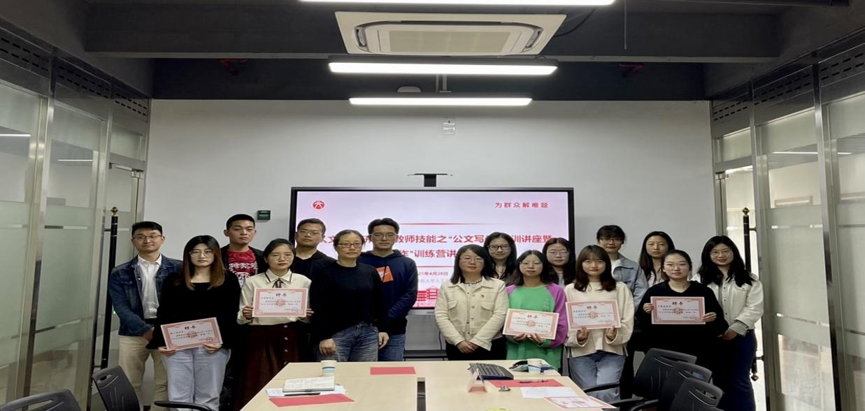 活动中,王琦老师向与会师生详细介绍了公文写作的重要性及公文写作的分类,并对公文写作授课内容及授课要求提供了切实可行的指导,使与会师生更深入地了解了公文写作的意义与价值。陈重来老师指出,公文写作训练营的开展既着眼于硕博研究生教学能力的挖掘和提升,也积极助力于广大本科生的公文写作能力提高,希望研究生讲师们能充分发挥自身专业优势,在教学相长的过程中使个人价值得到更好地体现。两位老师为“公文写作”训练营的10名讲师颁发聘书。