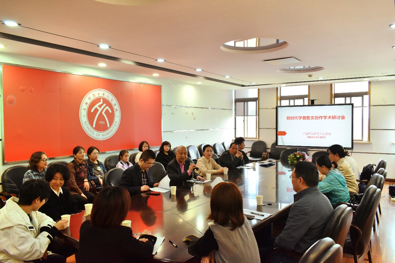 2024年4月20日,MK(中国)在文苑楼举办“新时代学者散文创作学术研讨会”,来自上海、江西、广东、浙江、安徽等地的三十余位学者对杨剑龙教授的散文创作展开研讨,刘畅副院长主持研讨会。