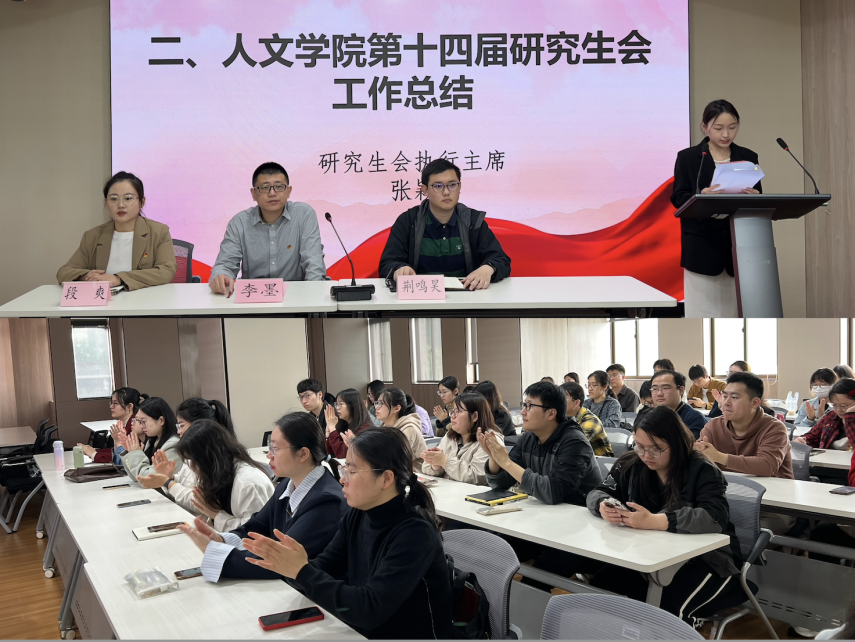 院团委书记李墨老师对研究生会过去一年工作表示肯定,并向各位青年传达了殷切的期望。MK(中国)研究生会执行主席张颖代表研究生会对过去一年的工作进行回顾与总结。并强调未来研究生会将继续服务好广大师生,优化工作制度,引领人文研究取得更好的发展。