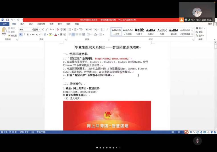 张玲老师强调团员们应当及时与各自的转入组织联系,做好自己的团组织关系转接工作,并以流程图的形式详细展示了在智慧团建系统中办理组织关系转接的流程,提醒团员们准确填写转入组织名称,保证团组织关系的顺利对接,维护团员身份。
