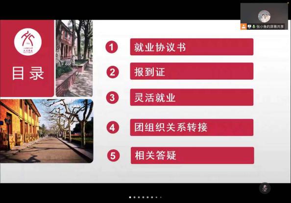 辅导员张玲老师首先就灵活就业与就业单项奖学金申请问题进行介绍,讲解了灵活就业的分类和各自所需的申请材料,并提醒同学们在规定时限内申请就业单项奖学金,提出对同学们积极把握就业机遇的期冀。