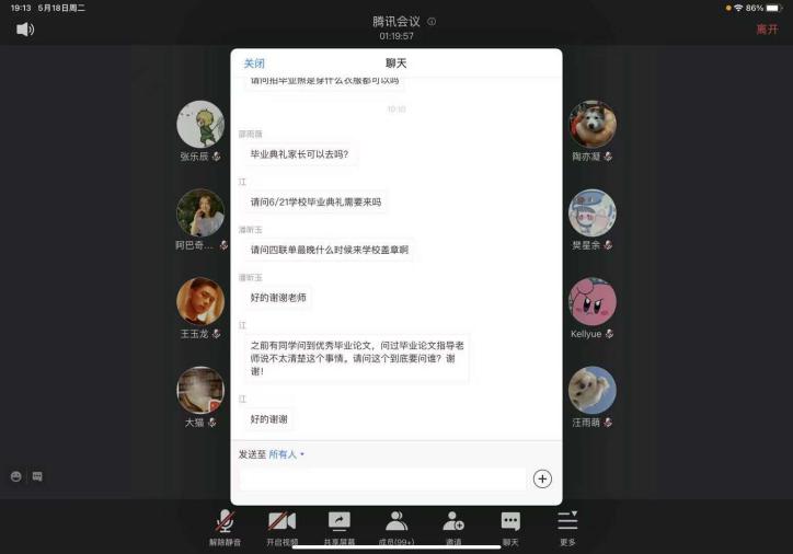 在答疑环节中,同学们纷纷提出了自己最关心的问题,如宿舍清宿时间、毕业照拍摄与毕业典礼安排、优秀毕业论文评选等。辅导员老师针对以上问题给出了精确的答复。最后,辅导员老师提醒同学们关注班级群中的就业信息、毕业流程相关通知,鼓舞毕业生们以积极的身心状态面对毕业挑战,以昂扬的步伐从学校踏入社会,以崭新的精神面貌迎接新气象。