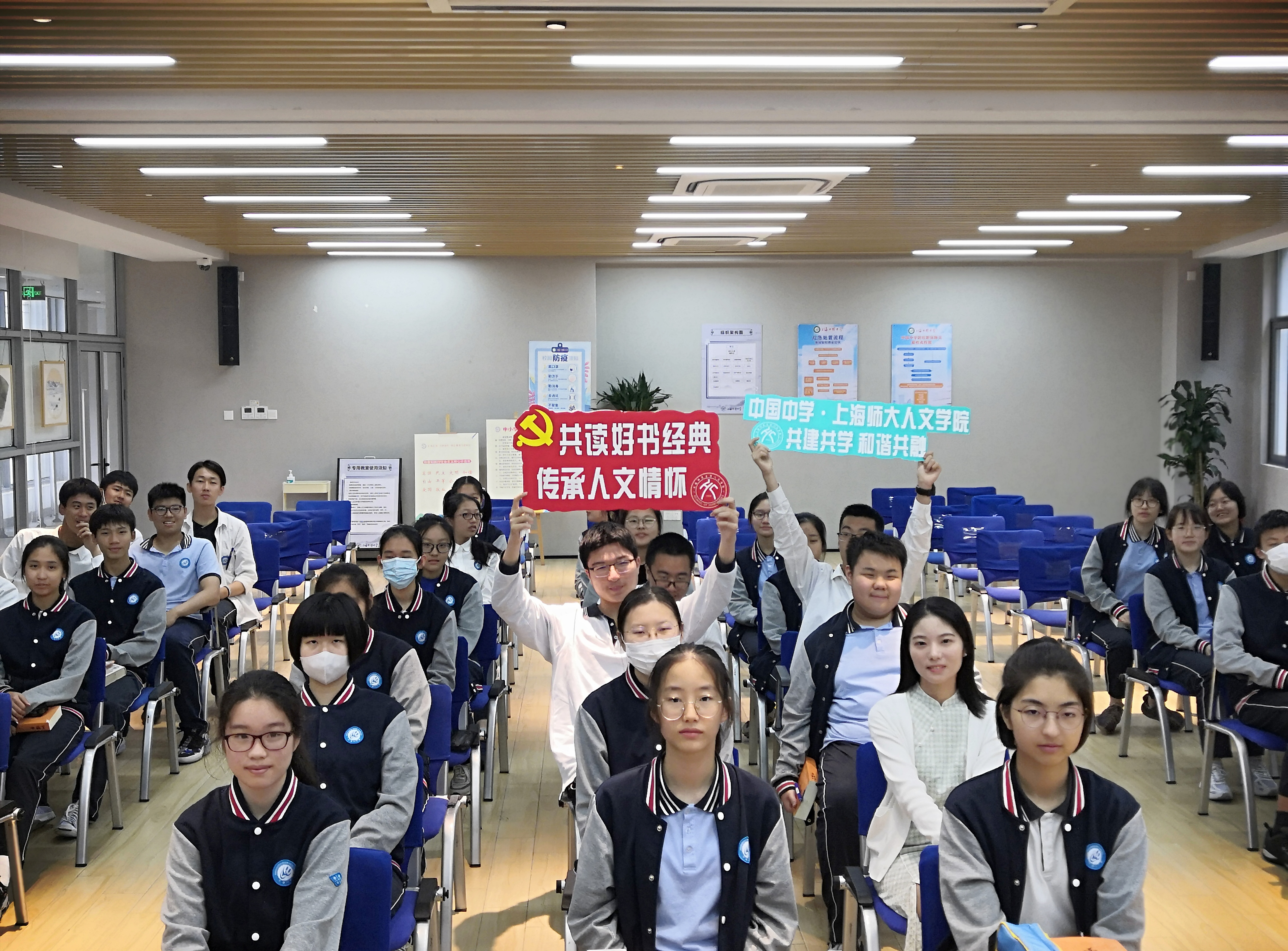 腹有诗书气自华。本次上海师大MK(中国)与中国中学“读书节”共建共学活动经过前期制定导读篇目菜单、招募和培训导读讲师、集体备课等诸多环节,既鼓励大学生和中学生共读好书,共同享受一场精神的盛宴,又积极着眼于弘扬中华优秀传统文化,传承学脉文脉。大学老师、大学生走进中学校园,以思想促进思想,以情感交流情感,强化高中生们的鉴赏水平,提升能力,教学相长,让彼此的心灵走得更近。