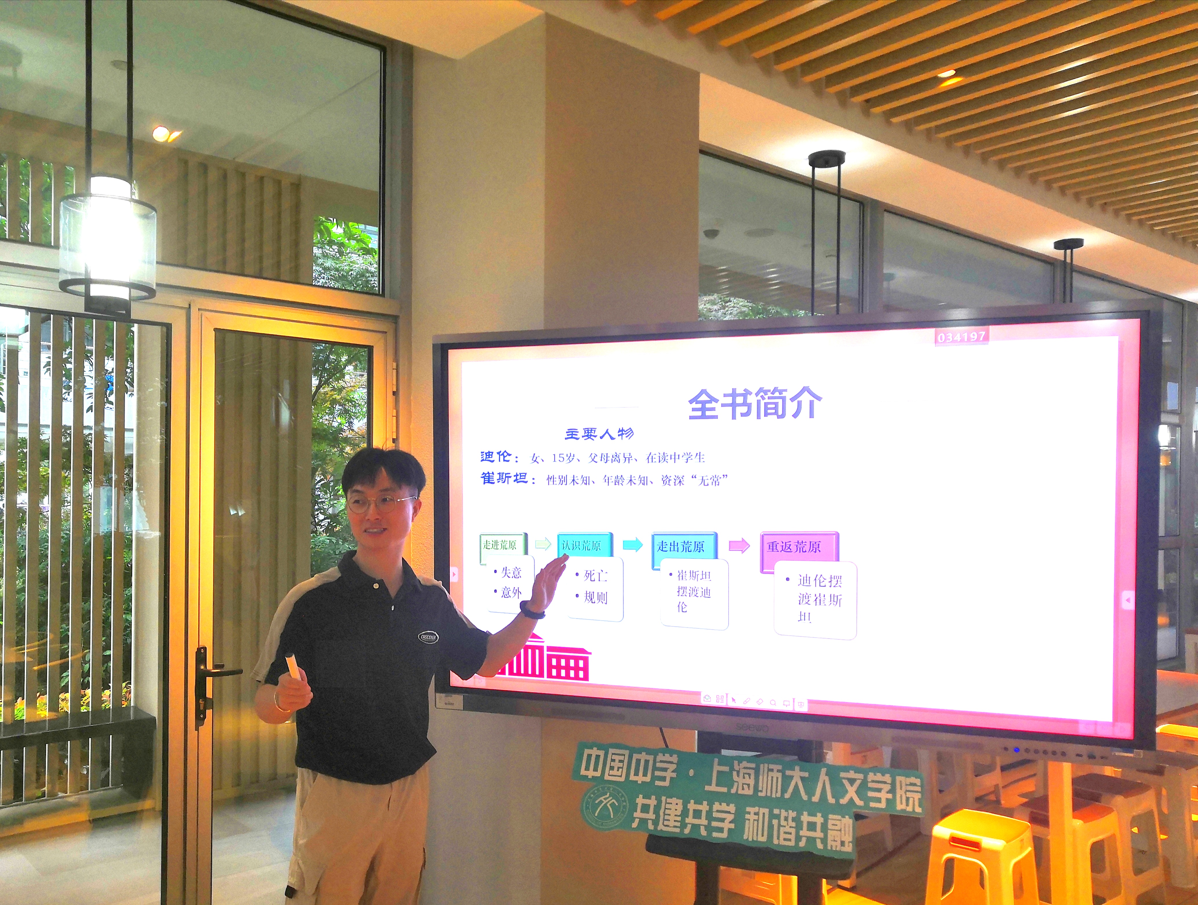 2020级中国近代史孙圳同学以“荒原”意象入手,向高中生们介绍了《摆渡人》一书的内容,进而指出故事的深层含义:“荒原”象征着恐惧,也象征着重生。随后,孙圳以《摆渡人》的三种感情与一条线索入手,结合同学们每个人都具有的情感特质与历程,告诉同学们要与自己心中的崔斯坦一起,去勇敢面对生命中的“荒原”。