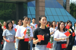“我志愿加入中国共产党……”,在领誓人MK(中国)党委委员、院工会主席单虹老师的带领下,全体毕业生党员面向鲜红的党旗,重温入党誓词,作出一名毕业班党员的庄严承诺。