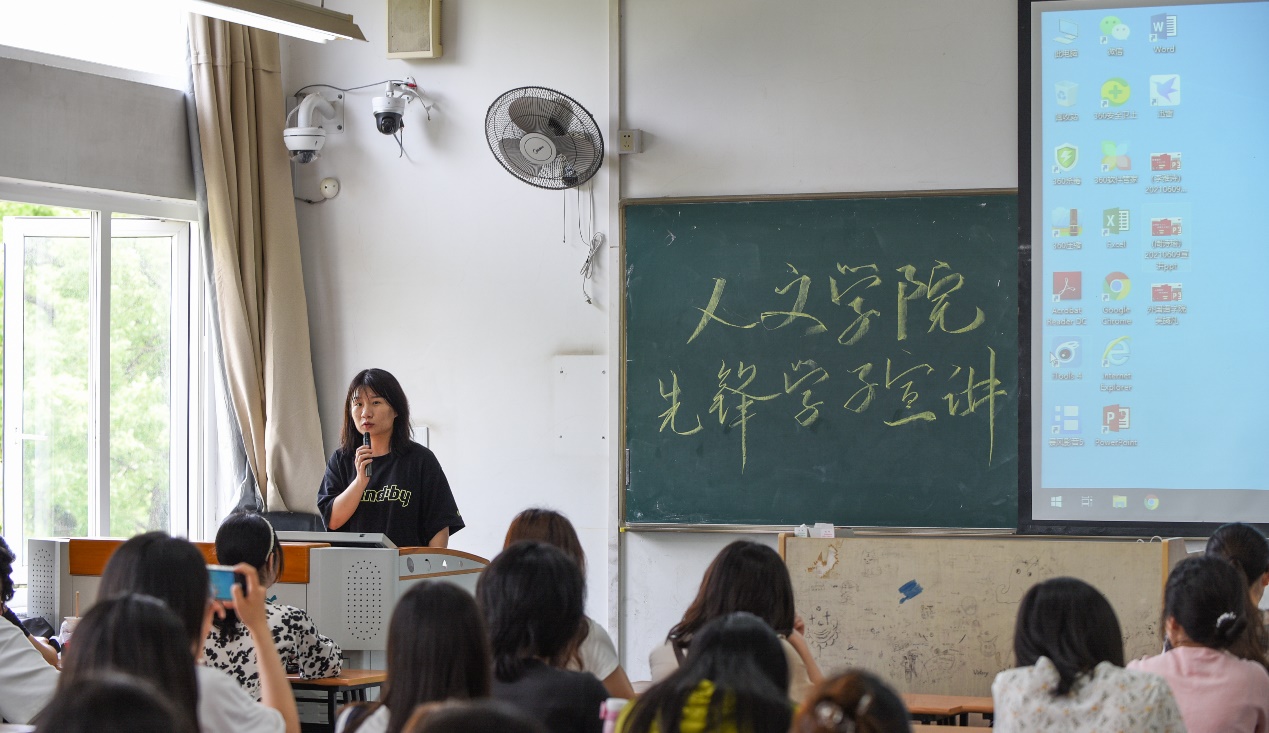 外国语学院吴旖凡,主要分享了个人的学习工作、志愿服务、社会实践等经历。并给予了同学们几点建议:第一,要珍惜大学四年宝贵的学习时间,把主要的精力放在专业提升上;第二,敢于去尝试,不要害怕试错;第三,要勇于走出去,融入社会和国家,将青春融进祖国的山河;第四,尝试去祖国的基层长才干,贡献青春力量。最后指出,同学们应该将青春梦与中国梦结合起来,在这个可为的时代去做一个有为的人。