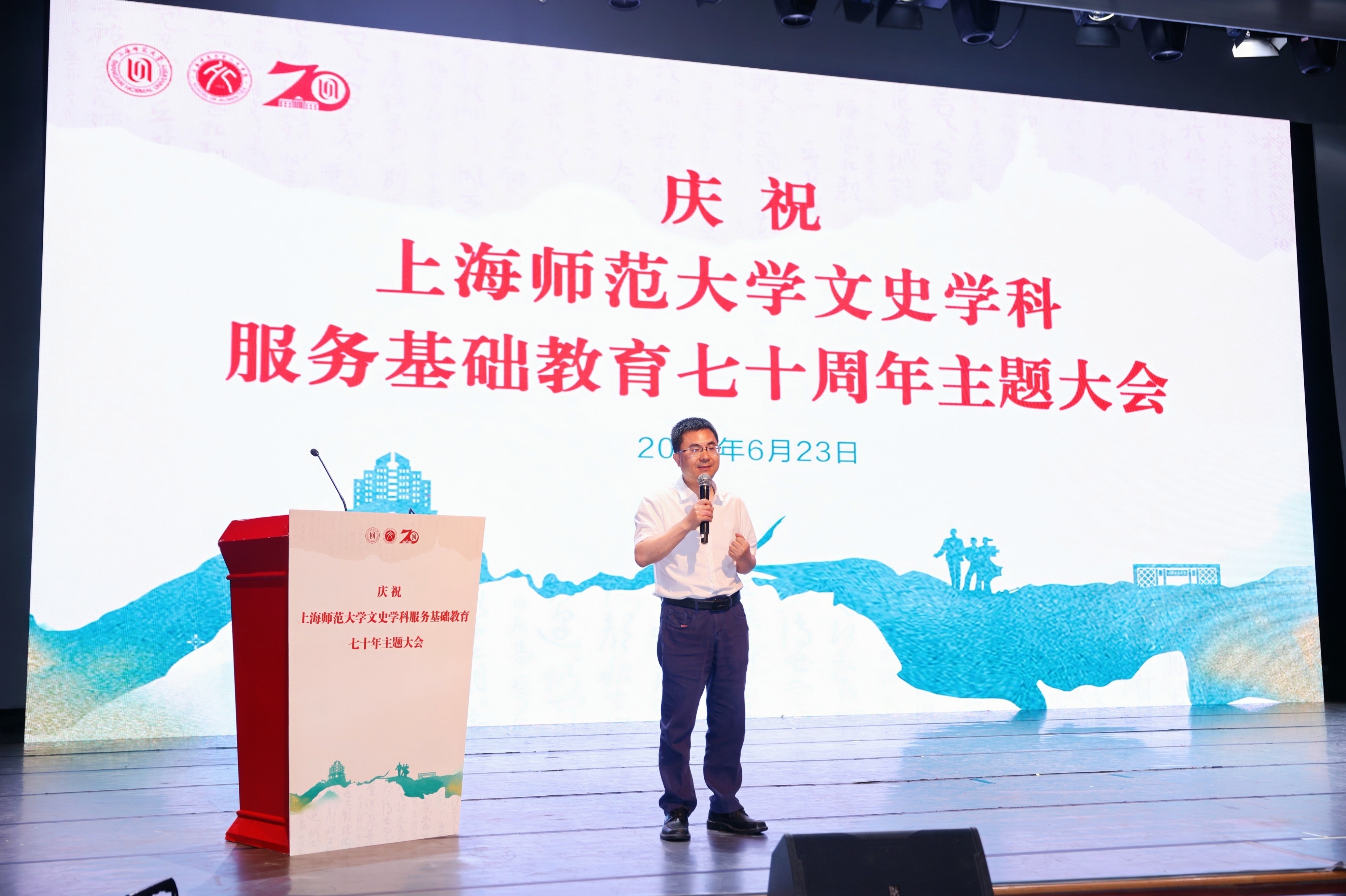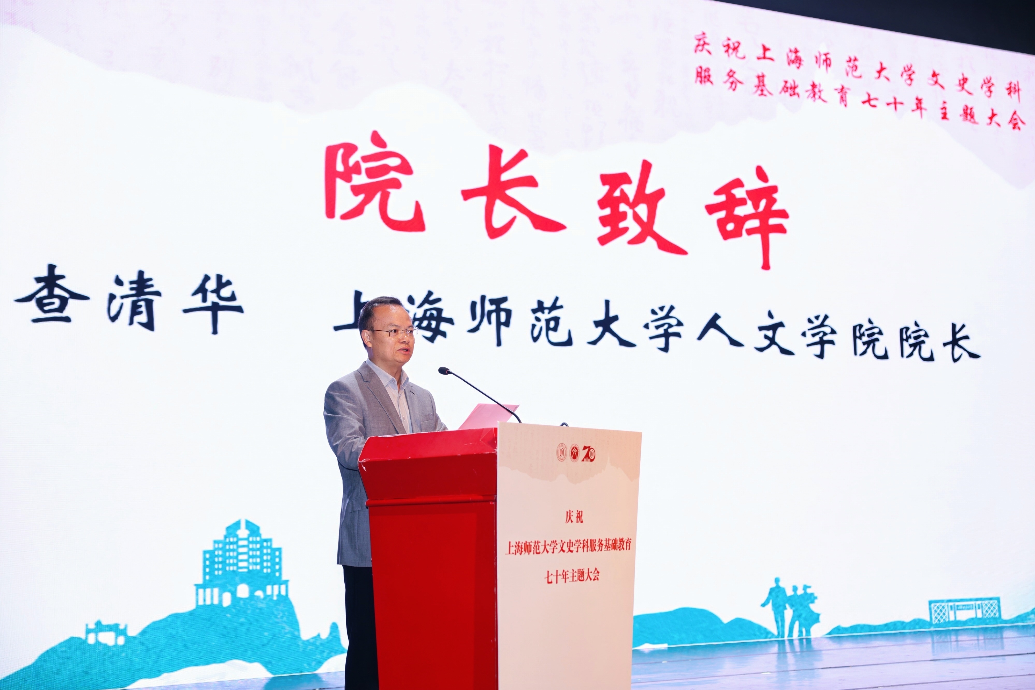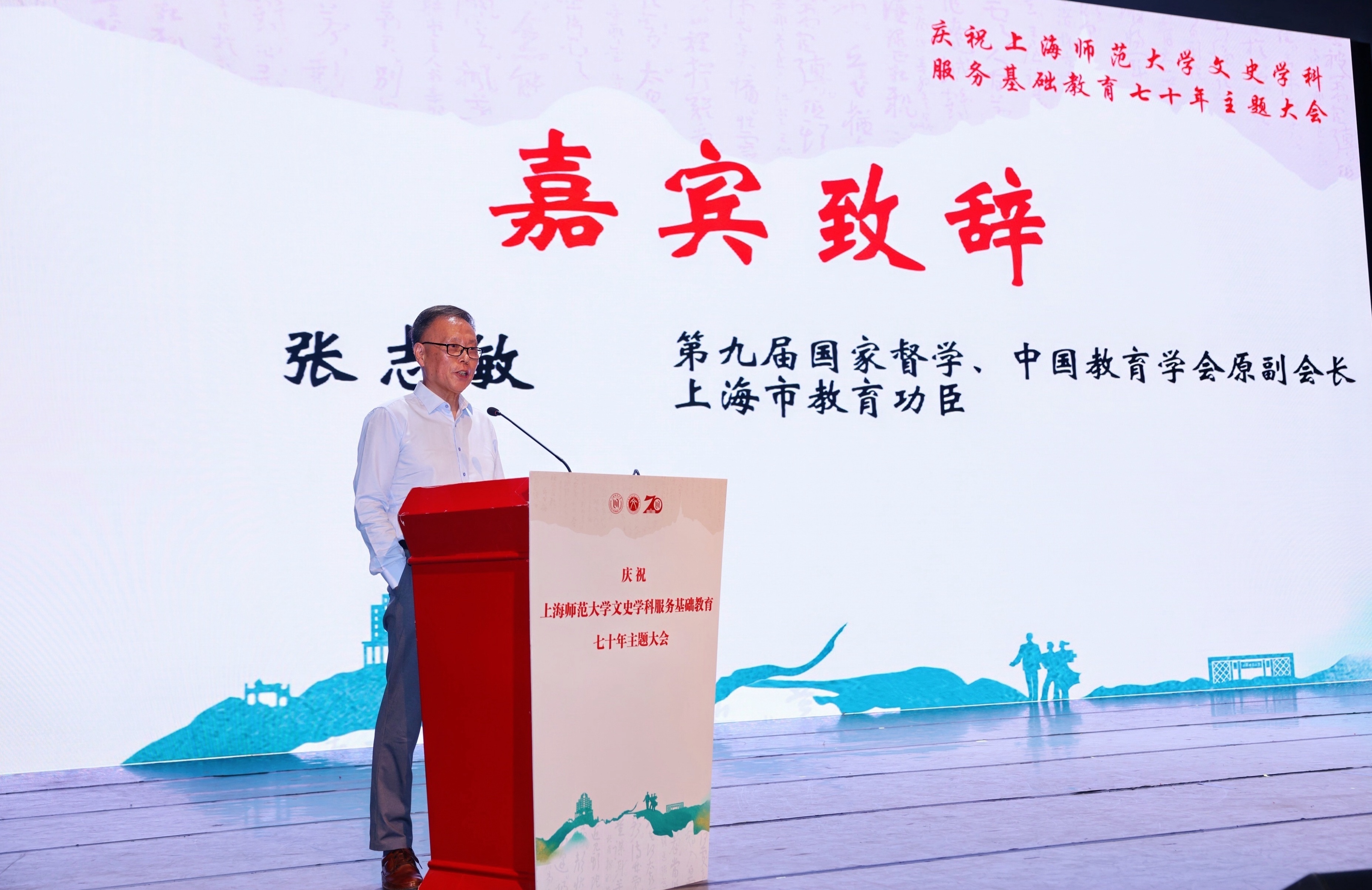 林在勇在致辞中指出,上海师大中文、历史两大学科名师辈出,学科建设、人才培养、科学研究、社会服务等各方面硕果累累。七十年来,文史学科始终坚守教师教育特色,源源不断地为上海乃至全国的基础教育输送骨干人才。他提出“加强党的领导,立足教育首要和根本问题”“突出第一标准,抓牢教师队伍建设基础”“坚持守正创新,把握正确思想方法”这三个思想共识,期望建设一支党和人民满意的高素质、专业化、创新型教师队伍,为加快建设教育强国做出更大贡献。