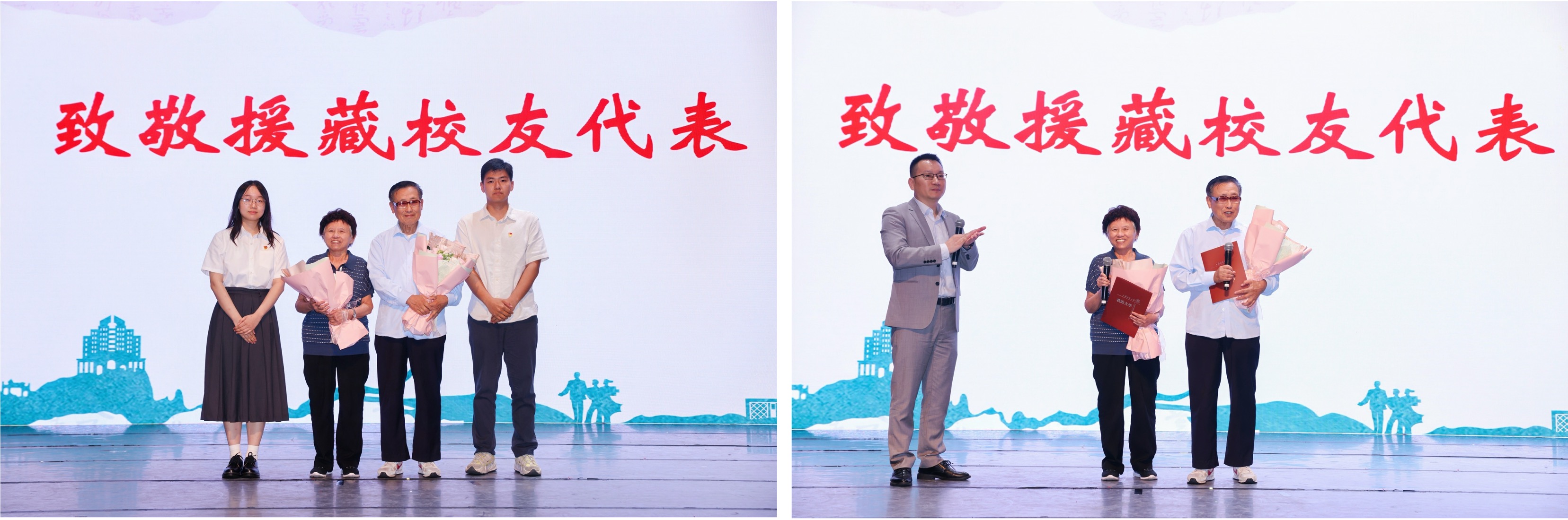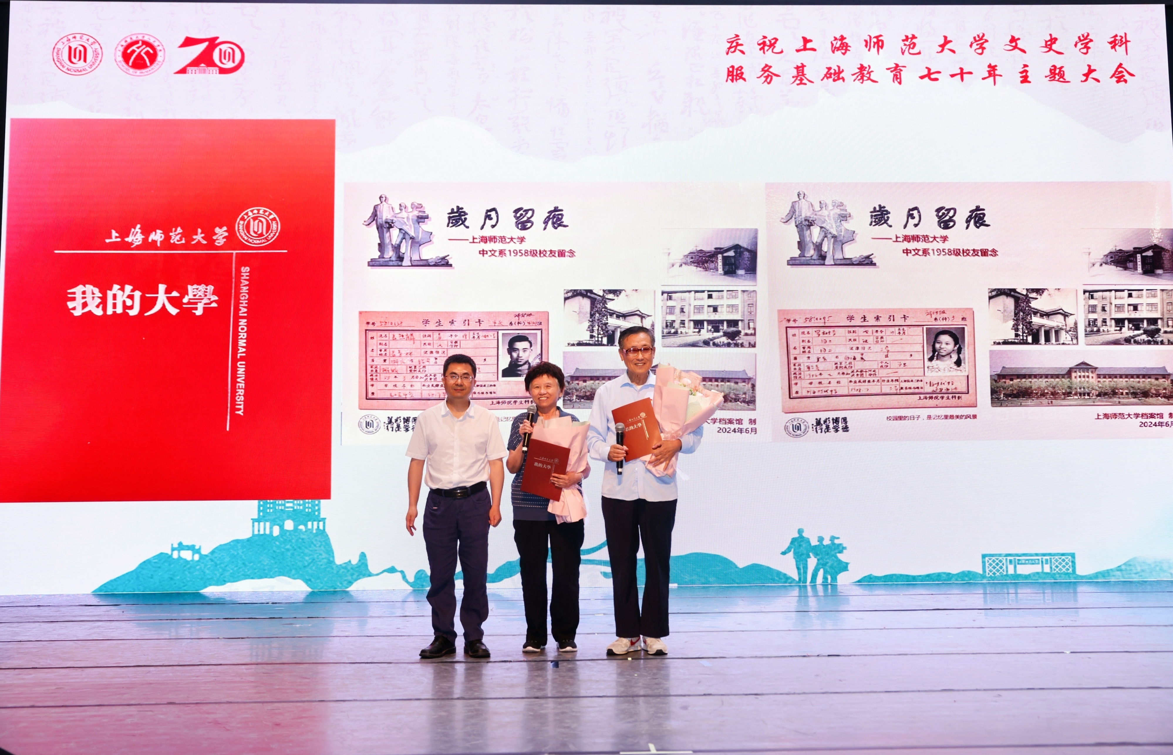 大会安排了向1958级中文系援藏校友代表致敬的环节。这批校友是MK官方网页版建校后首批援藏毕业生,共有19人。他们以自己的言行忠诚地实践了“特别能吃苦、特别能战斗、特别能忍耐、特别能团结、特别能奉献”的老西藏精神,体现了上海师大学子的责任与担当。MK官方网页版副校长李晔为援藏校友代表颁赠他们在校读书期间的学籍卡影印件。潘黎勇对两位校友代表进行了现场采访。