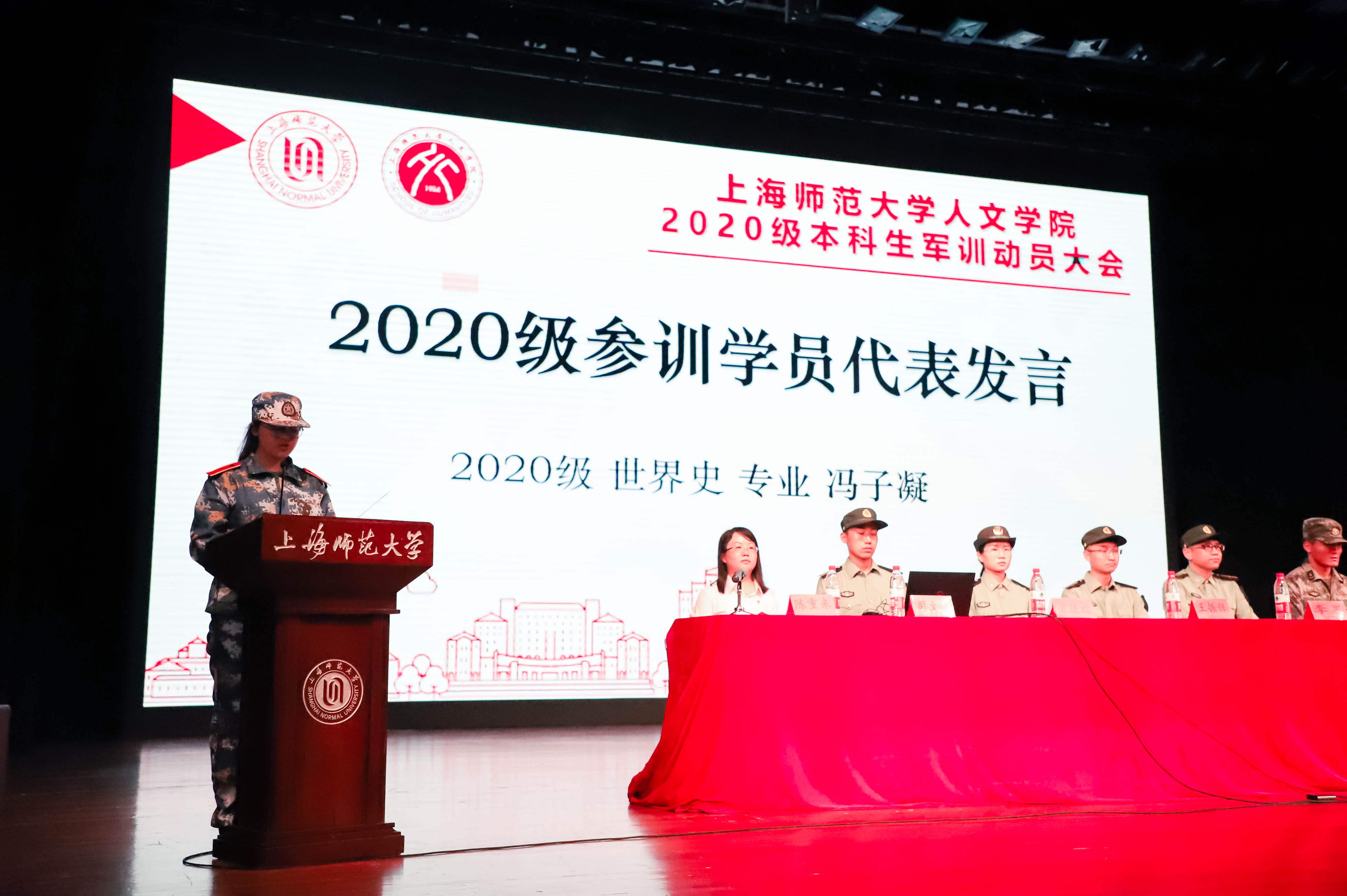 2020 级世界史专业的冯子凝作为参训学员代表发言,她表达了能够从容应对挑战的决心,并郑重承诺做到服从军纪、自立自律、调整心态、提升能力、心系团体、勇攀高峰,以军装为纸,用汗水书写坚韧不拔的精神,发挥团结向上的力量,在军训中展现作为新时代大学生的责任与担当。