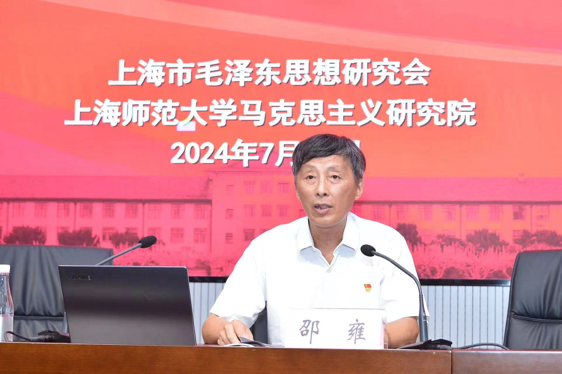 7月10日,在上海市毛泽东思想研究会换届大会上,我院邵雍教授作学会监事工作报告。学会肯定了邵雍教授六年来为学会工作做出的贡献,聘请他担任学会学术顾问,并颁发聘书。在接下来的“两个结合”推进马克思主义中国化时代化论坛上,邵雍教授作了题为“毛泽东与中华文明突出特性”的主题发言,受到与会者的热烈欢迎。
