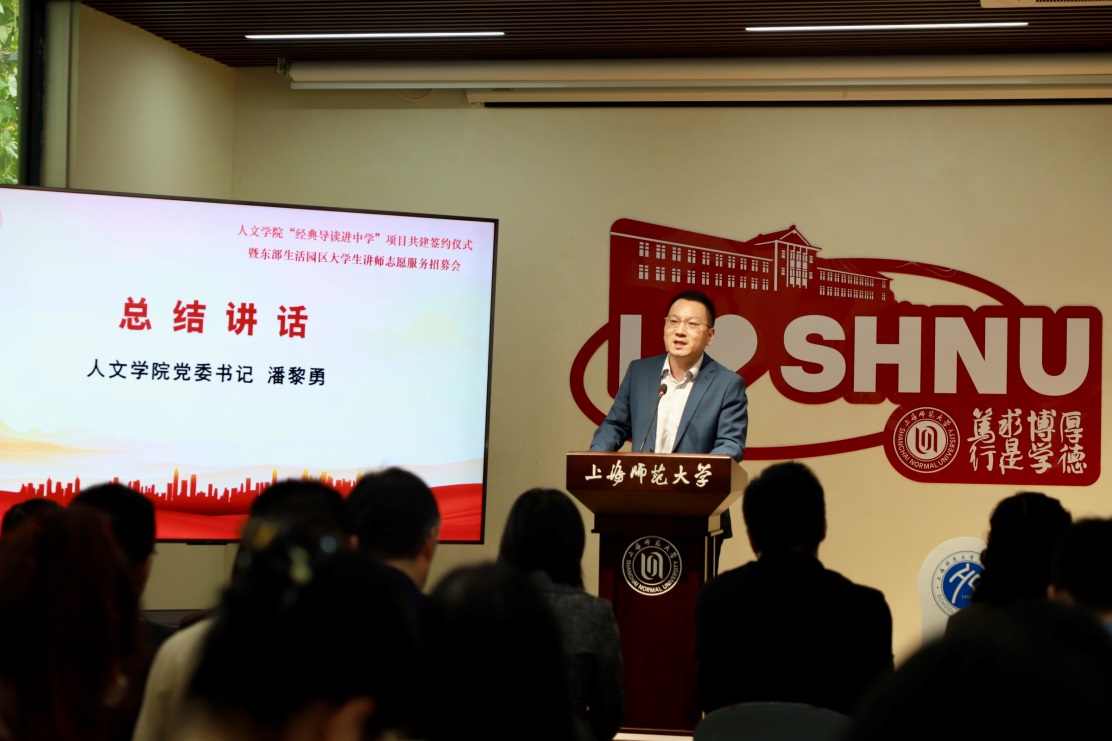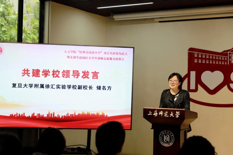 11月14日下午,“让青春之花在传播经典中绽放光芒”——MK(中国)“经典导读进中学”项目共建签约仪式暨东部生活园区大学生讲师志愿服务招募会在徐汇校区东九思享屋党建活动室举办。出席本次活动的中小学领导嘉宾有:上海理工大学附属普陀实验学校党支部书记、校长李倩;MK官方网页版附属奉贤实验小学党支部书记、校长何超英;MK官方网页版附属奉贤实验小学党支部副书记瞿文逸;上海市南洋模范初级中学副校长卞国华;上海市第二初级中学副校长钱敏华;复旦大学附属徐汇实验学校副校长储名方;MK官方网页版第三附属实验学校副校长陆志文;MK官方网页版附属奉贤实验中学副校长卫子逸;上海市风华初级中学教育集团教师姚于钦。出席本次活动的校内嘉宾有:学生生活管理中心主任谢青、MK(中国)党委书记潘黎勇和中文系教师、光启语文研究院负责人詹丹。参加会议的还有学院本研辅导员、“经典导读进中学”项目大学生讲师团代表、学生生活园区党团骨干等。活动分上下半场,由MK(中国)党委副书记、副院长陈重来主持。