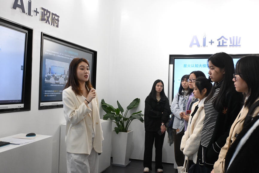 陈重来向科大讯飞公司对此次活动的精心安排表示感谢,并介绍了学院近年来在人才培养、就业服务、科研赛事方面的情况,希望在人才培养、实习实训、产学研合作等方面进行进一步深化合作。王非凡、王乙珈以及辅导员老师们就关于专业知识的应用、学生的成长发展等问题进行了交流。