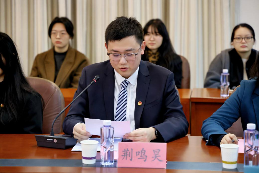 荆鸣昊介绍学院代表候选人情况。他指出,根据《中国共产主义青年团基层组织选举规则》、团中央有关文件精神和《关于推选共青团MK官方网页版第十六次代表大会代表的通知》,经各团支部酝酿,结合本次团代会代表比例,充分考量组织推荐与基层团支部推荐人选的现实表现和综合素质后,报请学院党委、校团委同意并经线下公示后,共产生17名代表候选人。