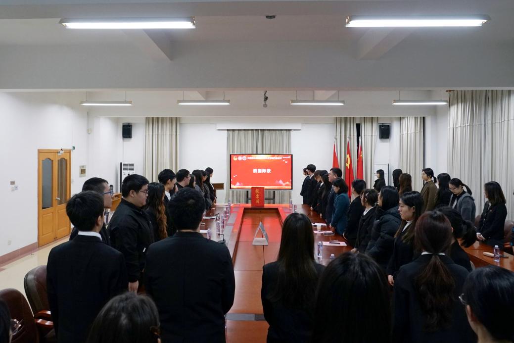 大会在庄严的国歌声中拉开帷幕。全体与会人员在肃穆的氛围中,齐声奏唱《中华人民共和国国歌》《中国共产主义青年团团歌》。