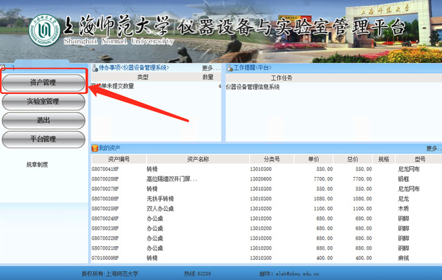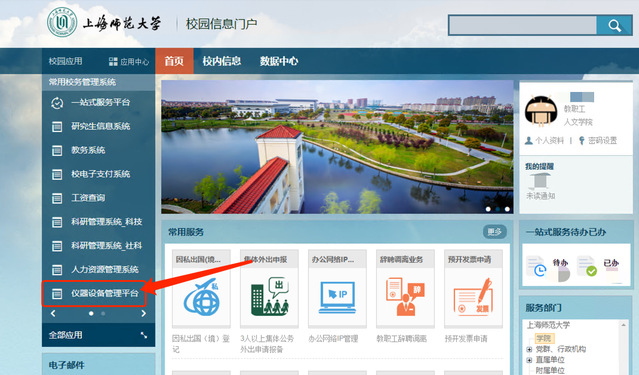 3、登录后,点击左下方的“仪器设备管理平台”