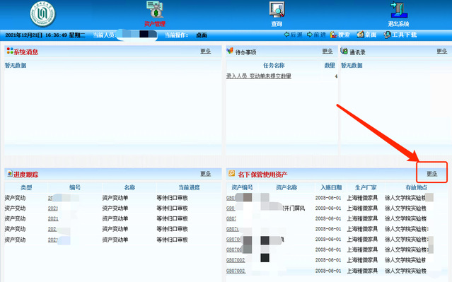 5、在新的页面里,点击右下方的“更多”,即可进入到最终的资产管理页面