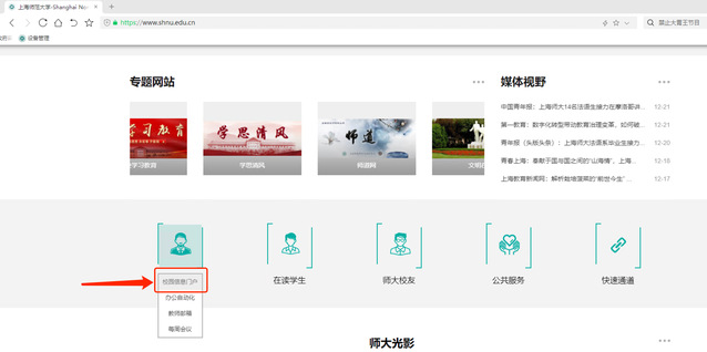 1、在学校主页的底部进入门户网站