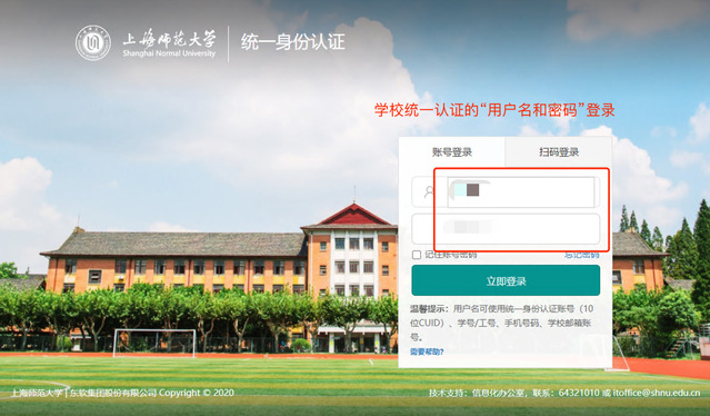 2、用学校统一认证的“用户名和密码”登录