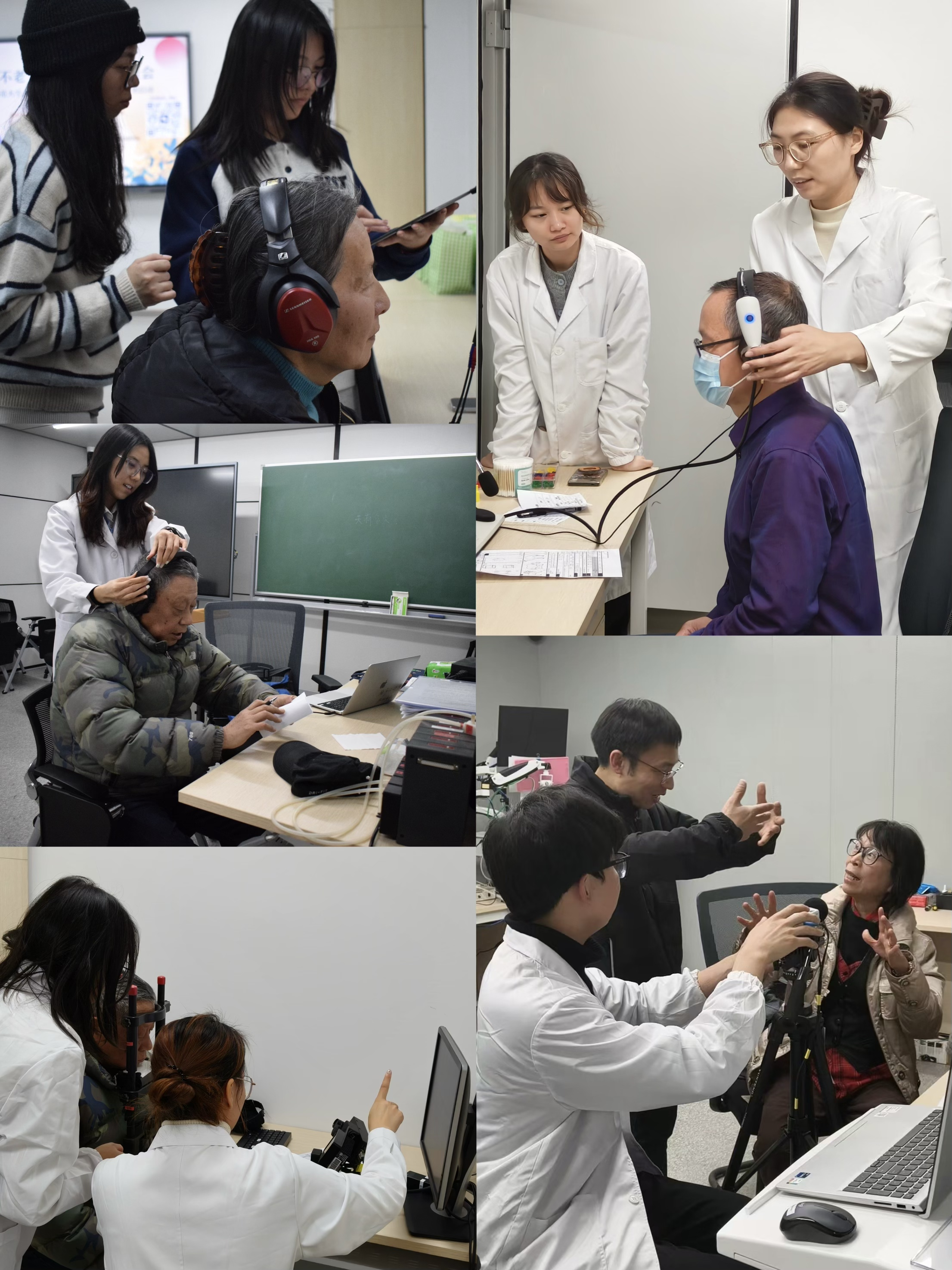 健康体检在人文实验中心进行,由专业人员为每位退休教工代表进行了声导抗、纯音测听等听力评估,喉图仪、多维嗓音分析、言语超声等言语嗓音评估,以及认知量表、眼动测试等认知评估。体检结束后,专家逐一解读体检报告,并根据个人情况提出了针对性的健康改善建议,旨在助力退休教工提升听力、言语及认知健康水平。