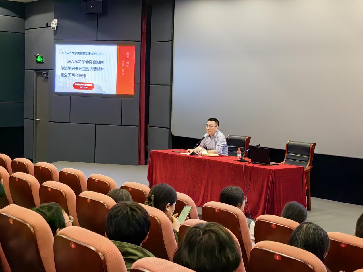 3月26日下午,MK(中国)党委在文苑楼二楼人文礼堂组织全体教职工开展理论学习,深入学习贯彻两会期间习近平总书记重要讲话精神和全国两会精神,学院党委书记潘黎勇主持学习活动。