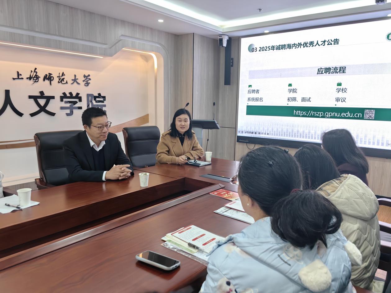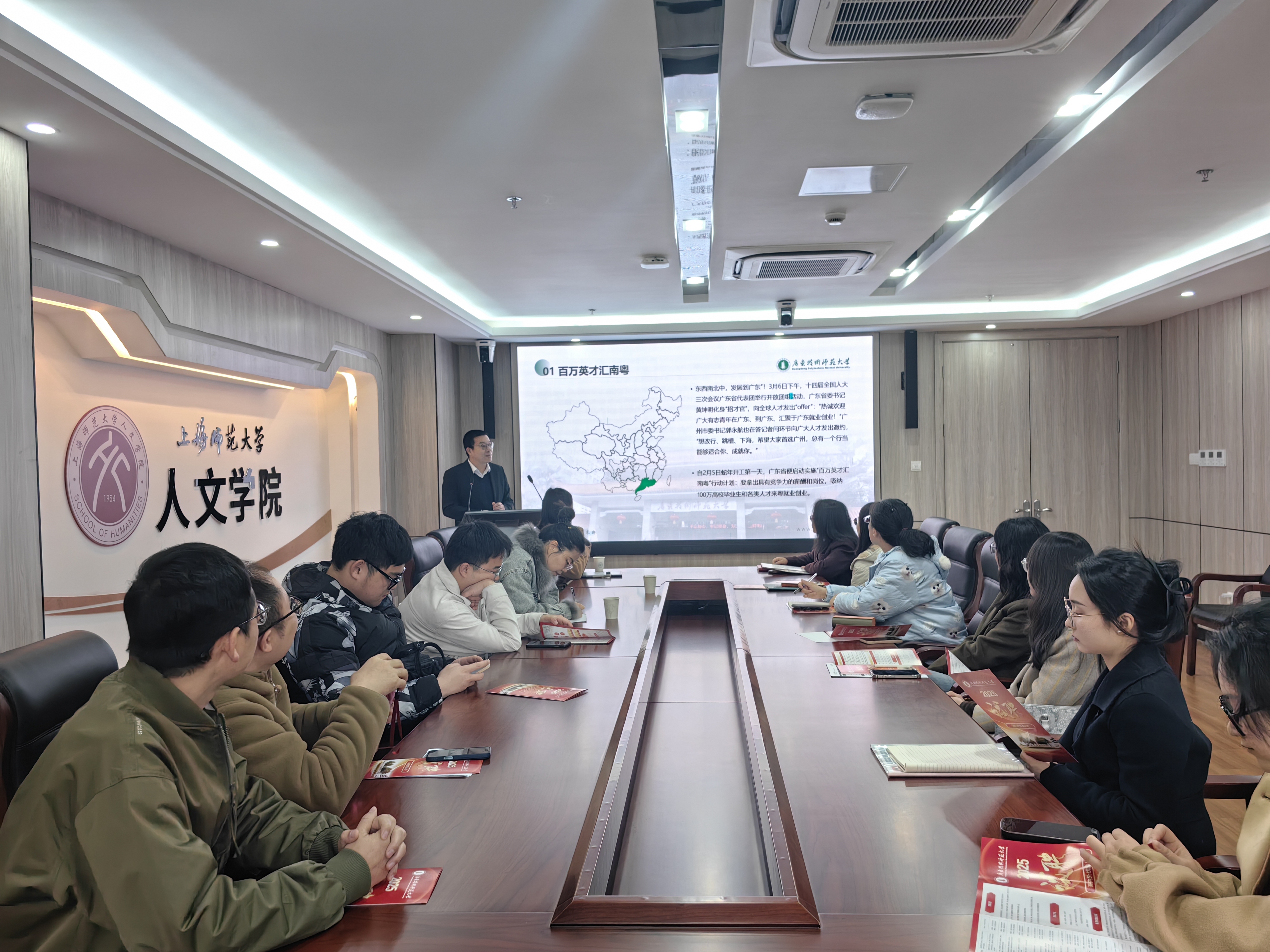 331日上午,广东技术师范大学招聘宣讲会在徐汇校区文苑楼406室开展。广东技术师范大学人事处副处长赵振有、广东技术师范大学教师、MK(中国)2009级校友王文敏博士等一行三人来我院开展招聘宣讲。MK(中国)党委副书记、副院长陈重来,学工办主任朱倩云、就业专项辅导员梁佳瑄以及人文、对外汉语学院等十余名毕业生参加宣讲会。