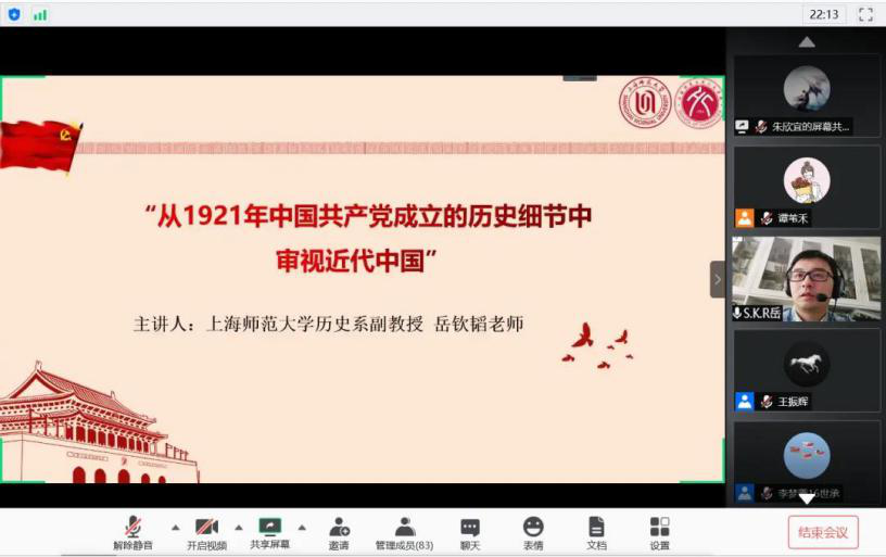 分享会首先由岳钦韬老师带来“从1921年中国共产党成立的历史细节中审视近代中国”主题分享,岳老师认为,关于党史的学习要以全面、客观的历史观重新探寻和思考那些被忽视的历史细节,真正理解中国共产党的历史任务和成立原因——领导国家和人民走向更成熟、更光明的前景。“历史就是历史,历史不能任意选择,一个民族的历史是一个民族安身立命的基础。”回顾中国共产党的创建,必须把视野放到更长远的历史中去,透过风云变幻和波澜壮阔,看清历史的趋势,明晰历史的必然。