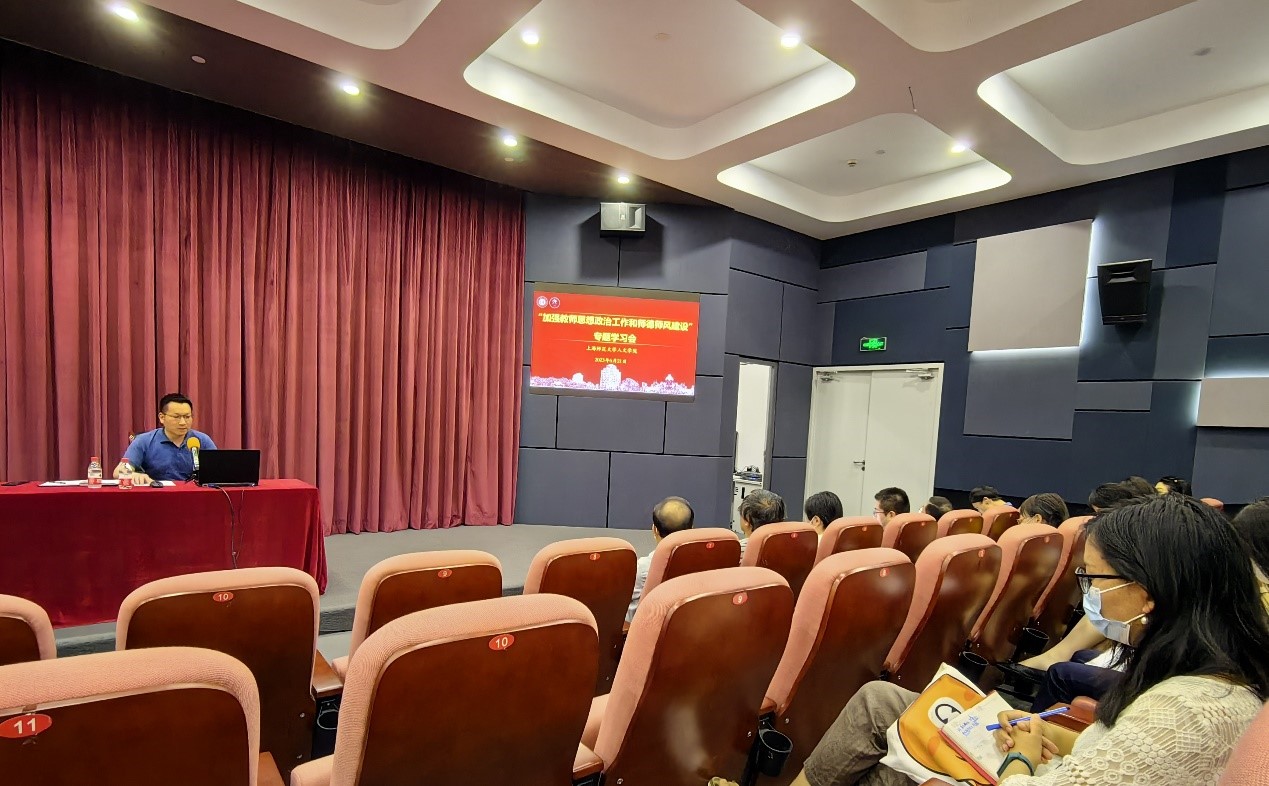 学院党委书记潘黎勇带领大家回顾了党的十八大以来习近平总书记在不同场合有关教育工作的重要讲话和指示批示,强调了师德师风对于教师队伍建设和整个教育事业的重要性,传达了教育部党组书记、部长怀进鹏在近期召开的师德师风建设工作推进暨师德集中学习教育启动部署会上的讲话精神。