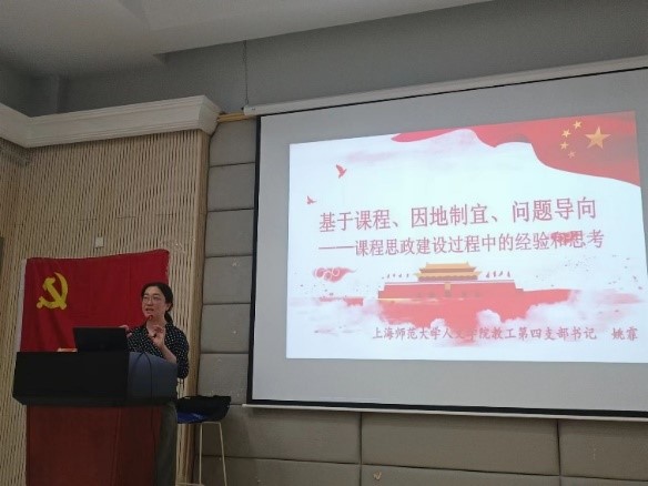 签约仪式后,姚霏作了题为《基于课程、因地制宜、问题导向——课程思政建设过程中的经验和思考》的报告,从“红色主题鲜明,思政元素饱满”与“课程即城市,城市即课堂”两方面出发,介绍了支部教师团队共同建设的教育部课程思政示范课程“上海城市与红色文化”的特色、亮点与创新性,并就如何设计课程思政的知识传授目标、能力培养目标、价值引领目标分享了自己的教学心得。分享交流之后,与会人员就“进一步发挥课程思政的引领作用”“医工、医文、文工如何交叉融合”等问题展开热烈讨论。