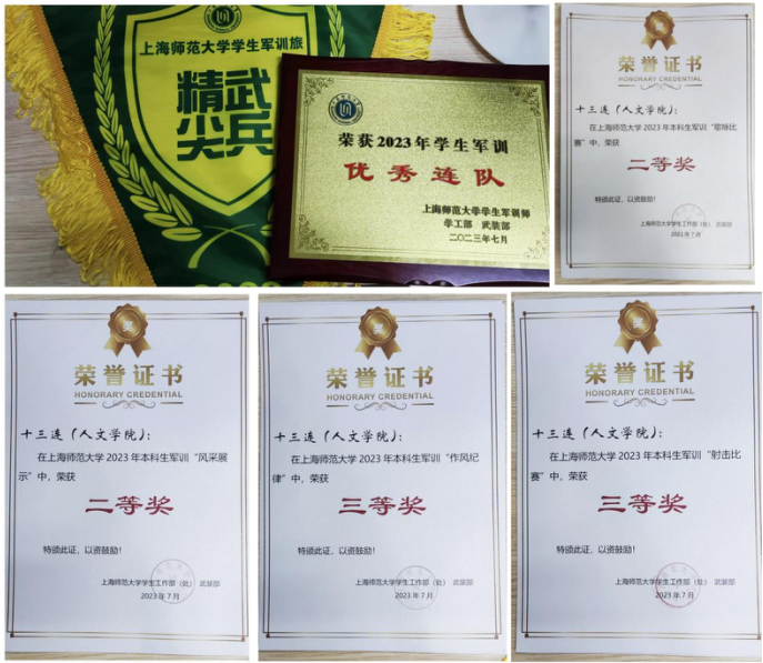 二团十三连荣获2023年学生军训优秀连队、“歌咏比赛”二等奖、“风采展示”二等奖、“射击比赛”三等奖以及“作风纪律”三等奖。四团五连荣获“风采展示”三等奖、“叠被子比赛”三等奖。