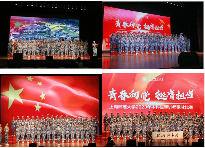 7月4日、7月11日,“青春向党,挺膺担当”本科生军训师红歌会、本科生军训师歌咏比赛先后在奉贤大剧院举行。军训师教官、指导员、参训学员代表参加活动,全师通过教室转播观看。