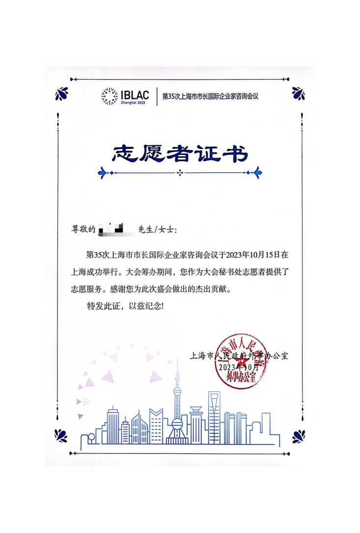 近日,上海市人民政府外事办公室发来感谢信,感谢MK(中国)6名学子积极参与第35次上海市市长国际企业家咨询会志愿者工作,认真负责,表现优秀,有力地保障了本次盛会的顺利圆满完成。上海市外事办公室向志愿者们颁发了志愿者证书。