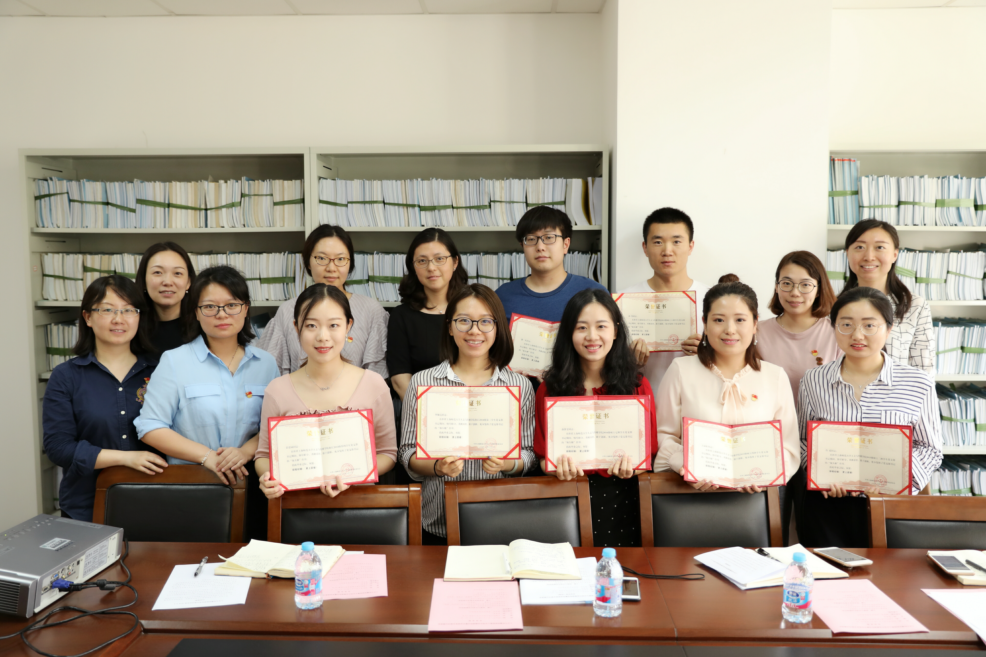 杨康贤老师代表学院党委寄语,感谢毕业班党支部书记们在工作期间,始终恪尽职守,勇挑重担,敢于创新,充分发挥了党支部书记“领头雁”的作用,也祝愿毕业班支书们前程似锦,更上层楼。会上,学生党建工作指导小组的老师们给毕业班党支部书记颁发了荣誉证书并合影留念。