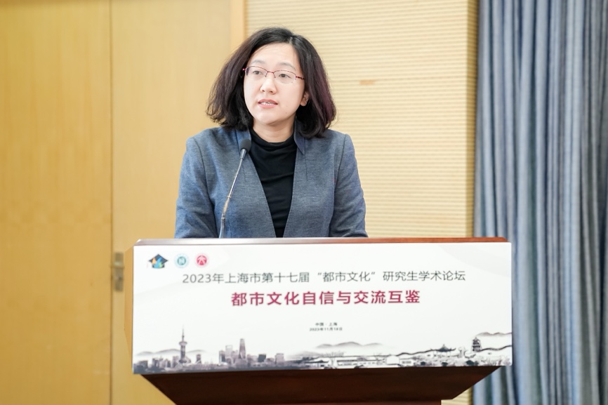 杨雪对我校近年来在研究生教育方面的工作和取得的成绩予以充分肯定,并指出本次“都市文化自信与交流互鉴”主题论坛紧密结合上海市社会主义国际文化大都市建设“十四五”规划,同时也是对学校都市文化学术品牌的一次守正创新,具有很强的现实性和针对性,期望同学们珍惜机会,在学习交流中拓宽学术思路。