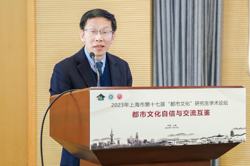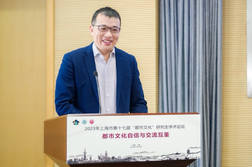 陈恒代表学校向出席本次论坛的专家、学者和广大同学表示欢迎,并对上海市教委多年来的支持和信任表示感谢。他希望广大同学可以利用好上海这座城市独有的都市文化资源,与时俱进,回应好时代之问,发挥青年学子的创造力,提升上海都市文化的创造力、传播力、影响力,服务国家文化强国战略。