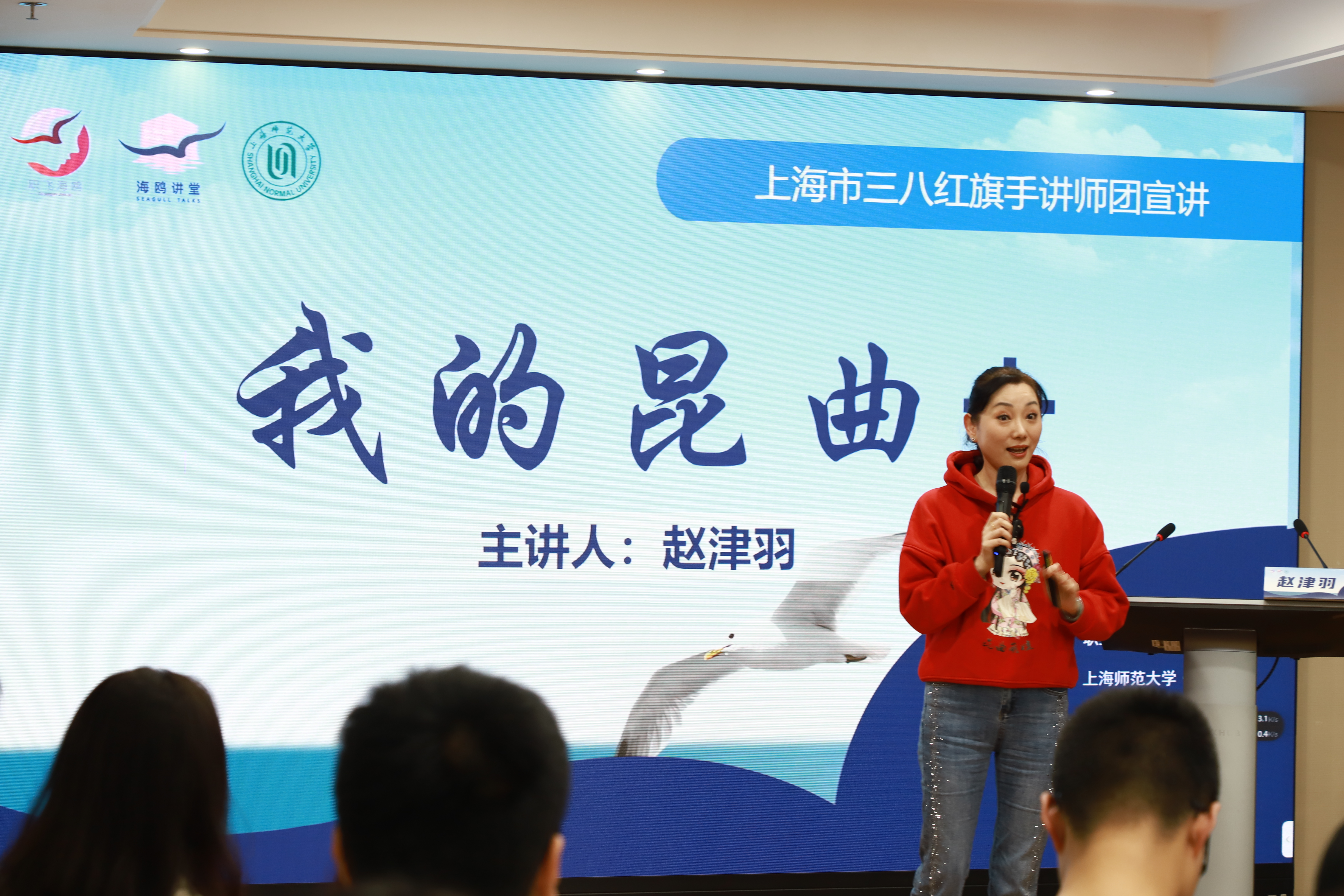 11月22日下午,由职业飞翔·海鸥计划指导,MK官方网页版·学思湾主办,MK官方网页版妇委会、MK(中国)承办,上海市女企业家协会、上海市教育系统妇工委、上海市三八红旗手联谊会协办的“海鸥讲堂”在徐汇校区文苑楼402室顺利开讲。上海市三八红旗手讲师团成员、全国第一位职业昆曲推广人、国家二级演员赵津羽作生动有趣的《我的昆曲+》分享会。