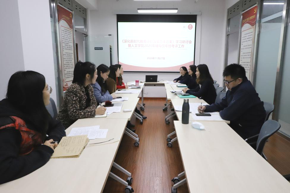 11月27日下午,《深化新时代教育评价改革总体方案》学习研讨暨MK(中国)2020辅导员年终考评工作会在文苑楼904室举行。学院党委书记朱政、学院党委副书记、副院长陈重来以及本研辅导员出席会议。