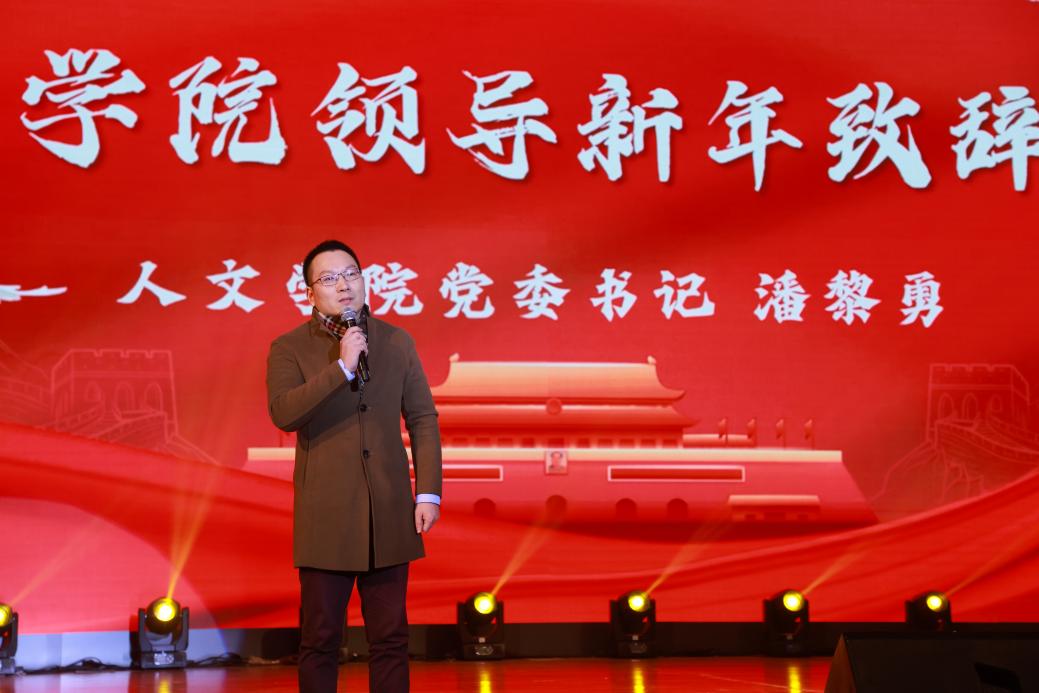 晚会伊始,MK(中国)党委书记潘黎勇致新年贺词。潘书记从“仁”“智”“勇”三方面对MK(中国)师生特质作了精准评价,他总结了学院在学科建设、教学科研、社会服务等方面的工作实绩,代表学院班子感谢全院师生一年来的辛勤付出,希望师生们能够继续披荆斩棘、劈波斩浪,保有学科高地和育人高低的优势。潘书记的讲话给予现场师生温暖和力量,鼓舞了大家的信心与士气。