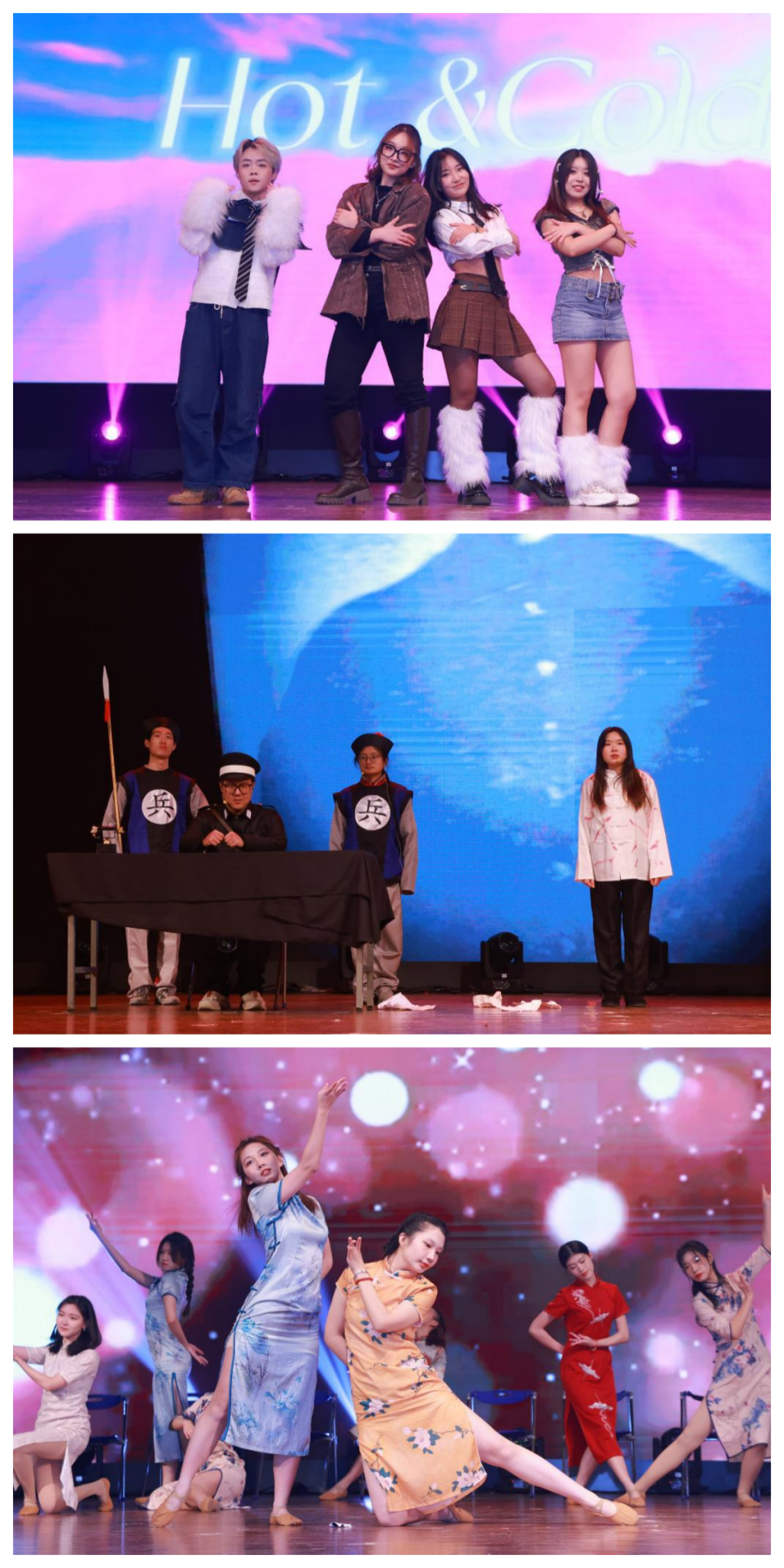 第一篇章为“弦歌不辍,薪火相传”。青春又活力的街舞《Ready For 2024》释放了大家的热情,台下爆发出热烈的掌声。同学们自编自演的红色文化历史情景剧《秋瑾》将秋瑾被捕入狱但坚定信念、不畏生死这一段可歌可泣的历史搬上了舞台。古装舞剧《金陵十三钗》为大家演绎了十三位女子帮助学生逃过日军搜捕的动容历史。台上身着旗袍的演员们不仅带来了优美的舞姿,更带领观众们亲临了那一段可歌可泣的历史。