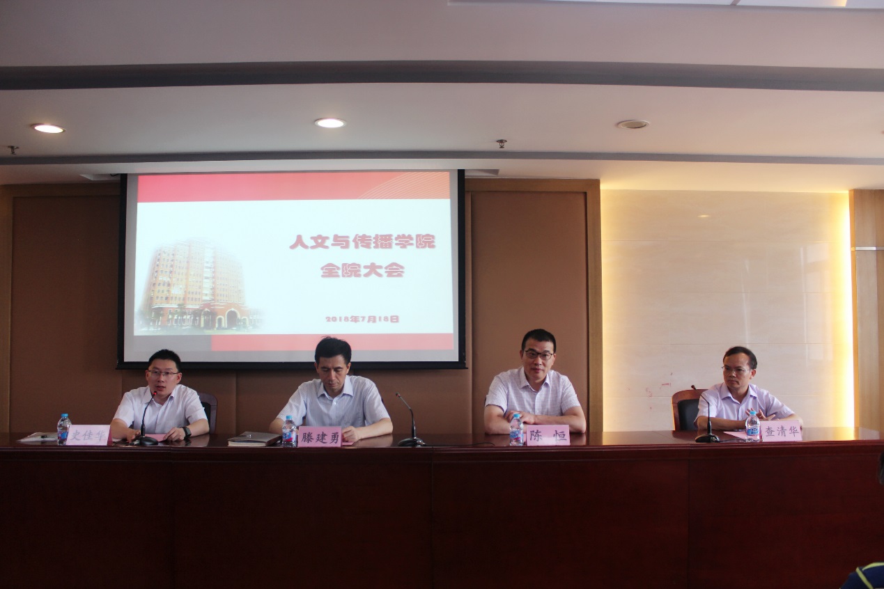 7月18日下午,上海师大人文与传播学院院长任免仪式在文苑楼602室举行。校党委书记滕建勇、校党委组织部副部长史佳华以及学院全体教师参加会议。