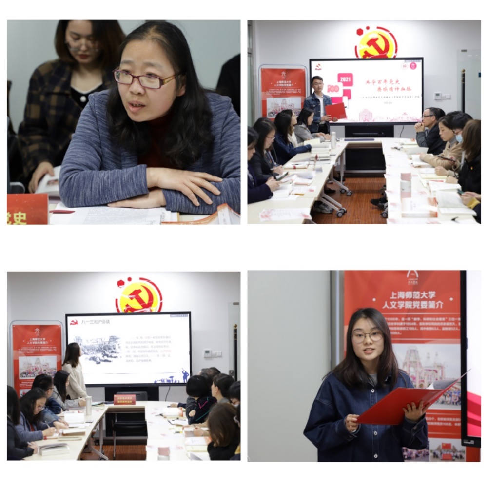 时光消逝,记忆永存。顾铃作《档案里的八一三淞沪会战》微课,她通过展示当年的致电记录,使中国人民可歌可泣、浴血奋战的历史壮举重现在师生们眼前。“腐朽的日子,早已沉到河底……”刘涵同支部党员一起声情并茂地送上诗朗诵《复活的土地》,并讲解诗歌的创作背景和深刻意义。