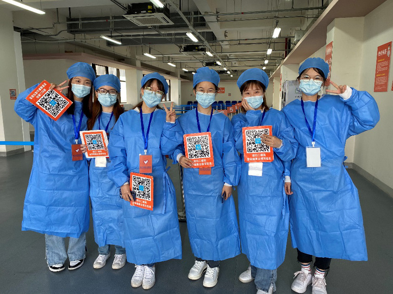 趁着曙光熹微,晓风习习,支部成员们心怀着志愿者的责任感和使命心出发,准时到达指定位置,在接种点内的志愿者之家接受培训,并按培训要求更换服装、熟悉设备与场地。在志愿服务工作中,每一位党员都将爱心与耐心并举,体验疫苗工作的艰辛与欢乐。检查疫苗接种人员口罩佩戴情况、协助有困难群众出示健康码进行现场预约、讲解疫苗接种流程、陪护高龄接种人员完成接种、维护现场秩序、协助护士盖章……志愿者们在各个岗位中谨慎认真、各司其职。当天,志愿者们协助接种点工作人员完成了2000余人的新冠疫苗接种工作。