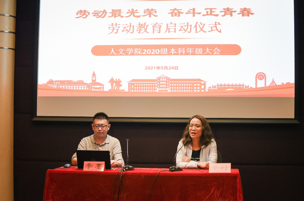 上半场劳动教育启动仪式中,平叶就学校开展的劳动教育的岗位设置进行了详细的介绍,她鼓励同学们在接下来两周的劳动教育周中充分实践,有所收获,有所成长。辅导员曹小艺作学院劳动教育具体安排介绍。陈重来结合大学生思政工作要求,鼓励大家投身劳动,在实践中不断提高能力,培养良好的道德素养并在劳动教育实践中建立志同道合的友谊,形成精诚合作、团结互助的良好校园氛围。